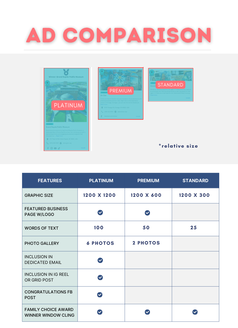 Article Inclusion: Your ad upgrade is listed in the Family Choice Awards Winner’s Guide.